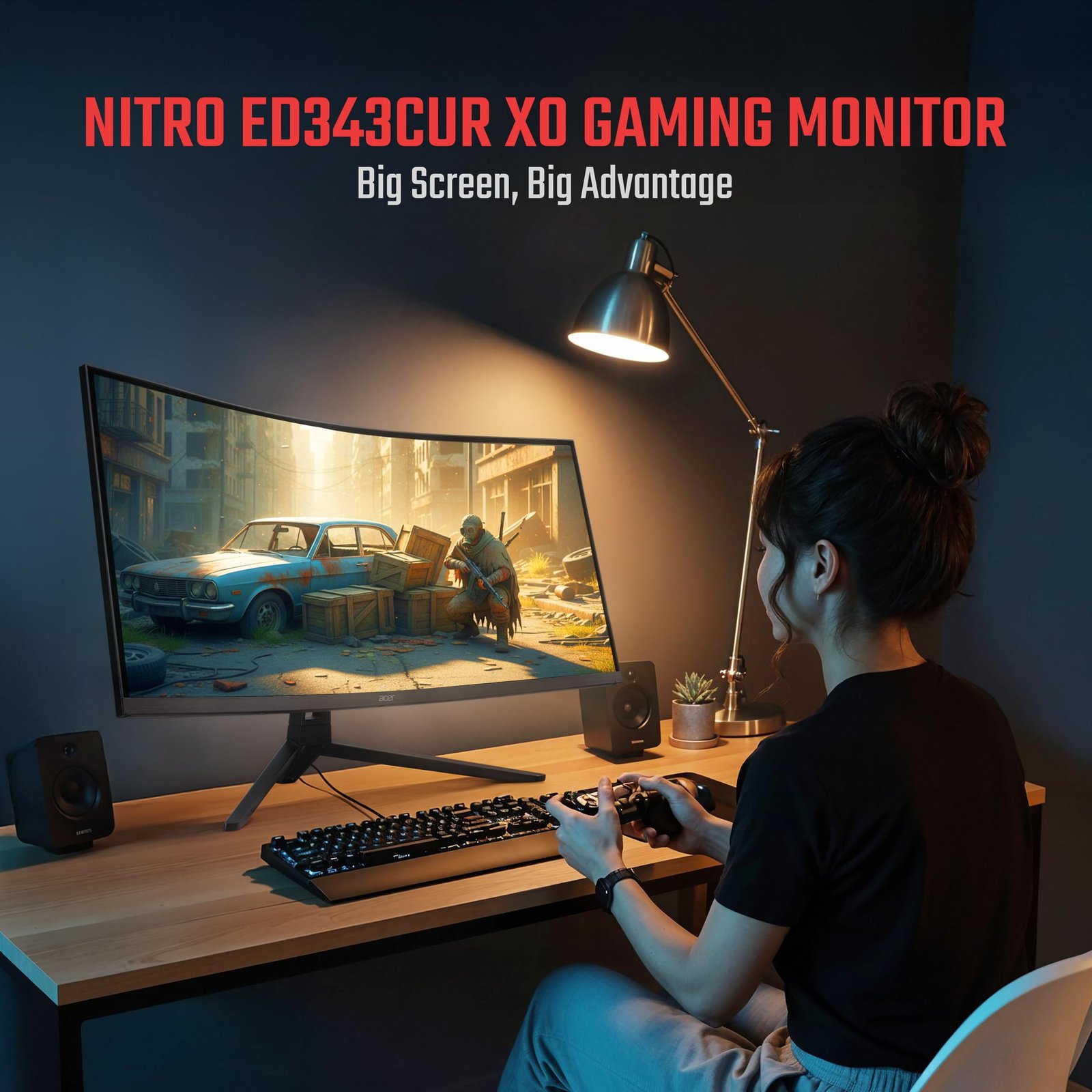 Details: Step into a new dimension of gaming with the Acer Nitro EDA343CUR X0 a 34-inch UWQHD (3440×1440) curved monitor designed for ultimate immersion. Its 1000R curvature wraps around your field of view, delivering a cinematic and wide-screen experience perfect for gaming, movies, and multitasking. With a blazing 200Hz refresh rate via DisplayPort, ultra-fast 0.5ms response time, and AMD FreeSync Premium, every frame is rendered with exceptional clarity and smoothness, eliminating lag and screen tearing. HDR10 support, sRGB 99% wide color gamut, and 1.07 billion colors bring lifelike visuals with vibrant accuracy, while dual 3W stereo speakers and RGB ambient lighting elevate your setup. Engineered for comfort, Acer VisionCare technology with Flicker-less, BlueLightShield, Low Dimming, and ComfyView ensures reduced eye strain during extended sessions. Connectivity is effortless with 2×HDMI 2.0, 2×DisplayPort 1.4, audio out, and VESA mount support, making this monitor the perfect blend of style, speed, and precision.