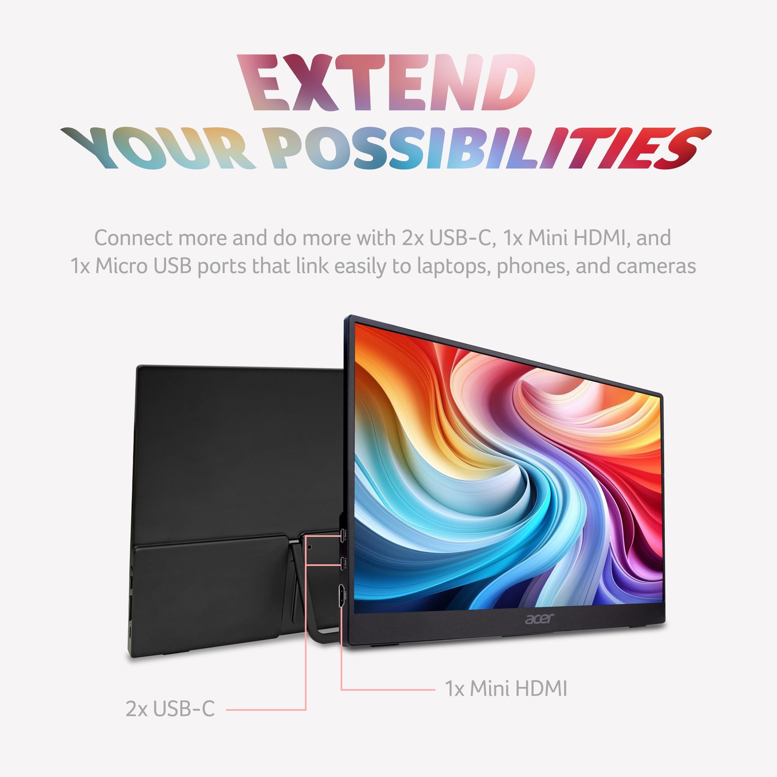 Acer PM161Q B1 15.6 Inch Full HD Portable Monitor (1920×1080) | IPS Panel | 2 x USB Type-C & HDMI | 4 ms | Adaptive-Sync | Ultra-Slim 700 g | Built-in Speakers | Ideal for Laptop, Phone & Travel Use