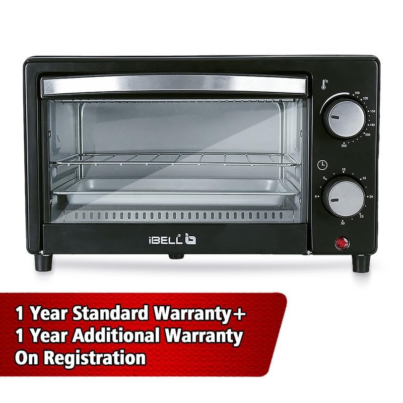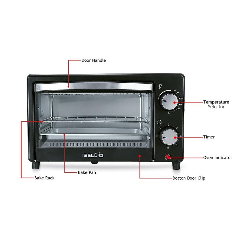 iBELL WAVE10 OTG Oven, 10 Litre, Compact Size, 1200W, Oven, Toaster, Griller, Precise Temperature & Timer Control (Black)