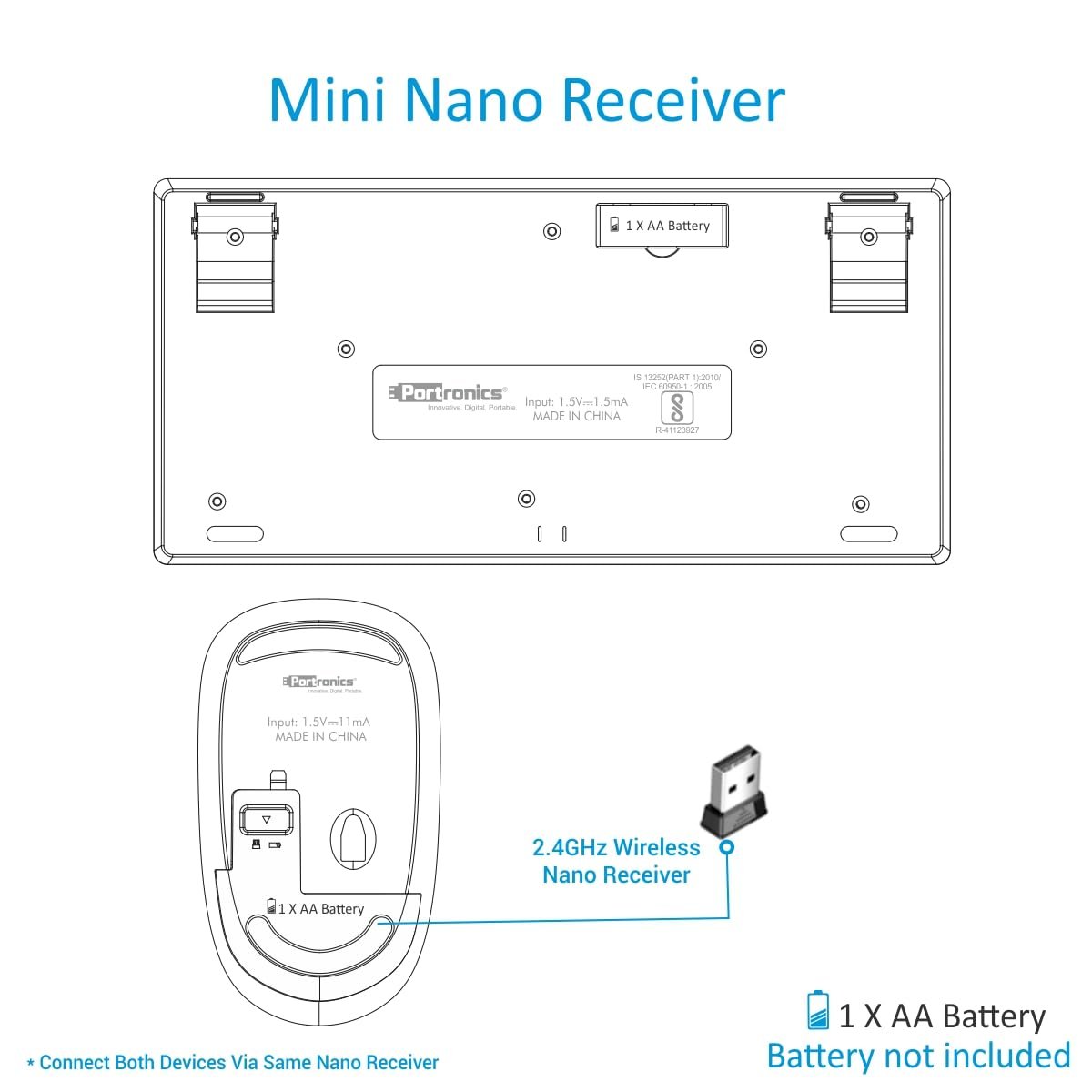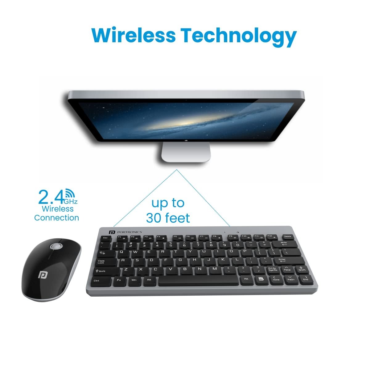 Details: Portronics Key2 Combo Wireless Keyboard and Mouse Set, with 2.4 GHz USB Receiver, Silent Keystrokes, 1200 DPI Optical Tracking, Compact Design, Multimedia Keys for PC, Laptop & USB Supported Devices (Grey)