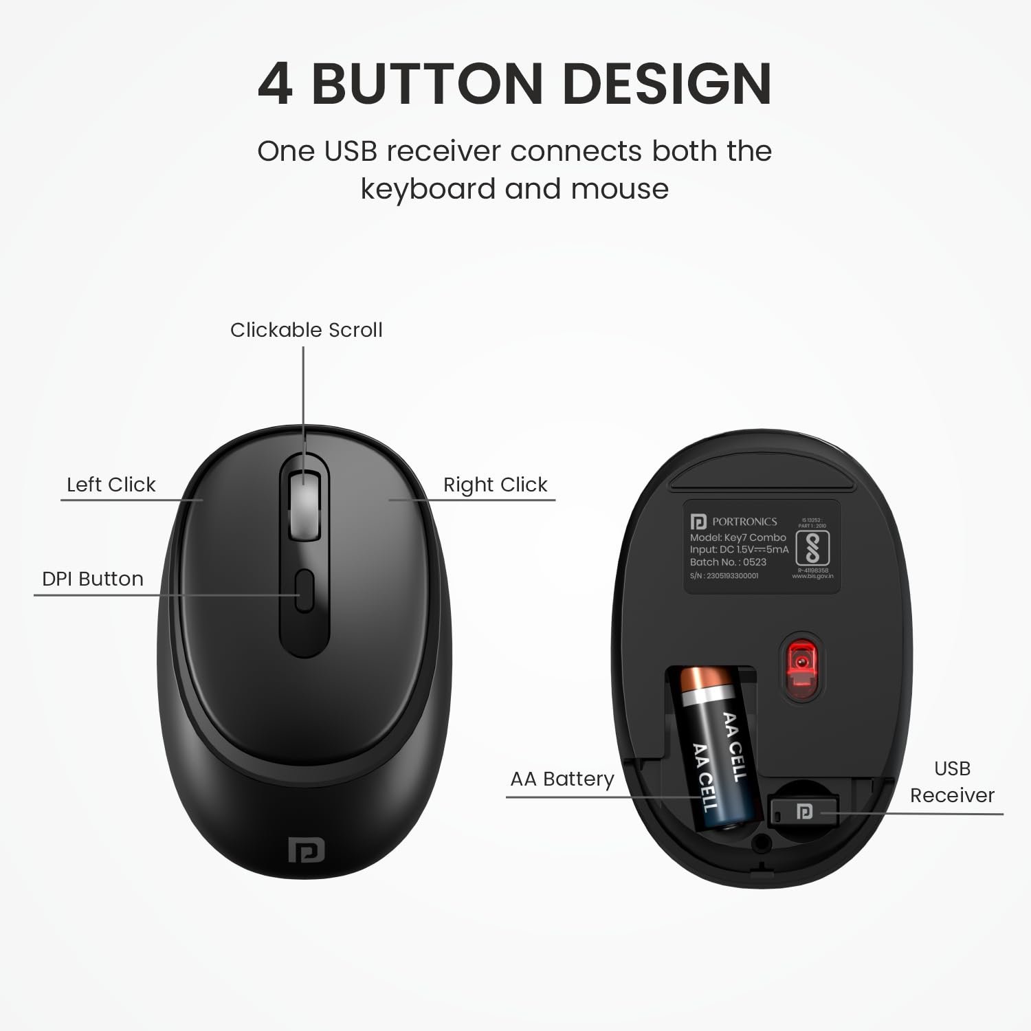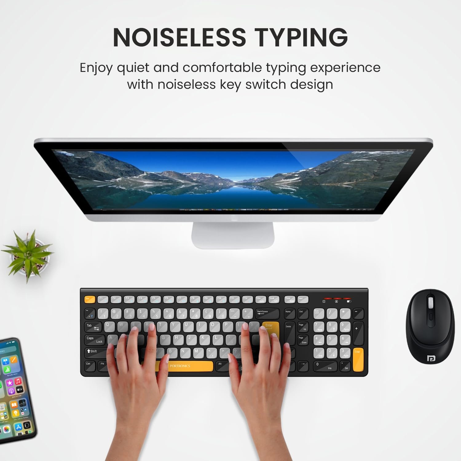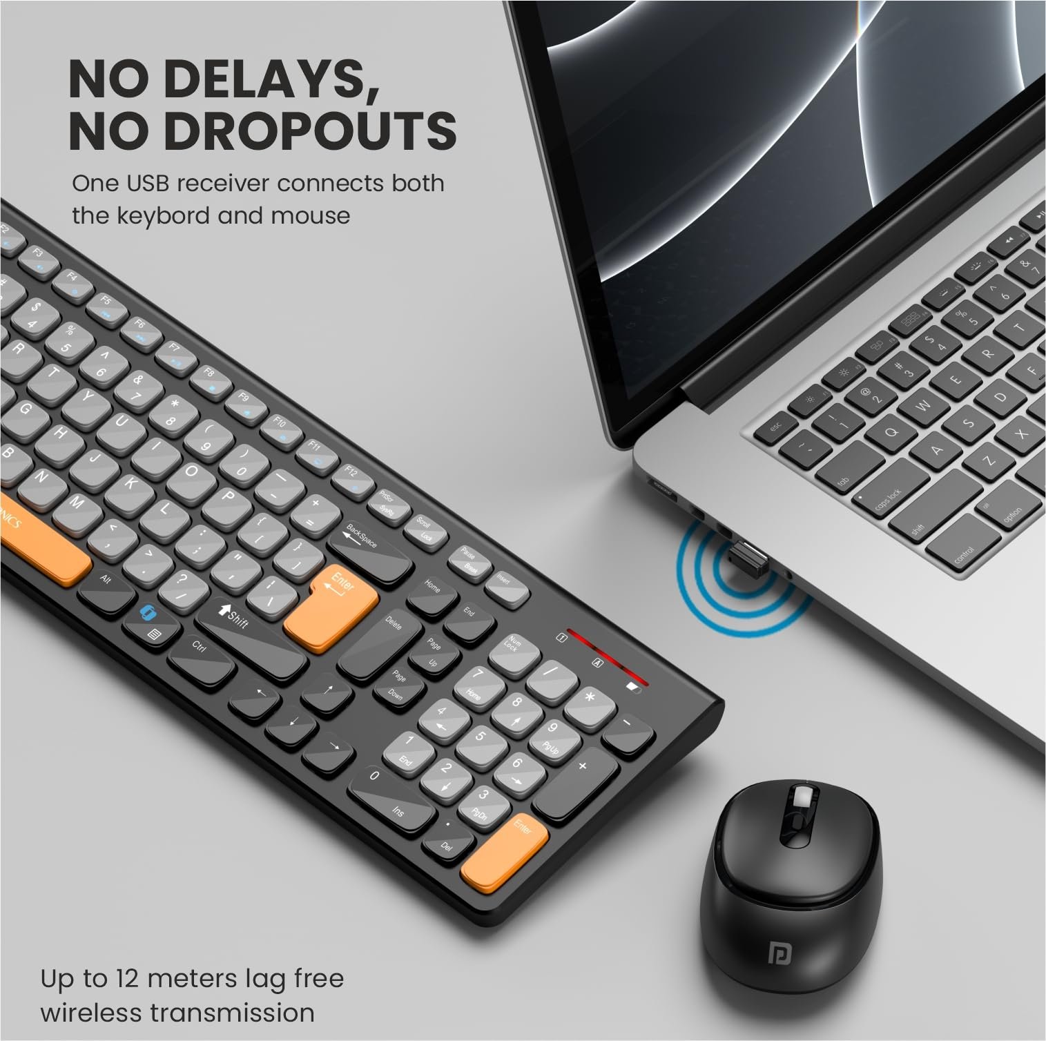 Details: Portronics Key7 Combo Wireless Keyboard & Mouse Set with 2.4 GHz USB Receiver, 10m Working Range, 12 Shortcut Keys, Adjustable DPI, 10 Million Key Life & Click Life for PC, Laptop, Mac (Grey+Orange)