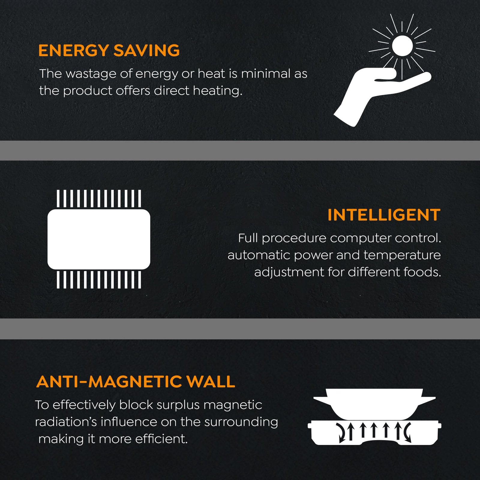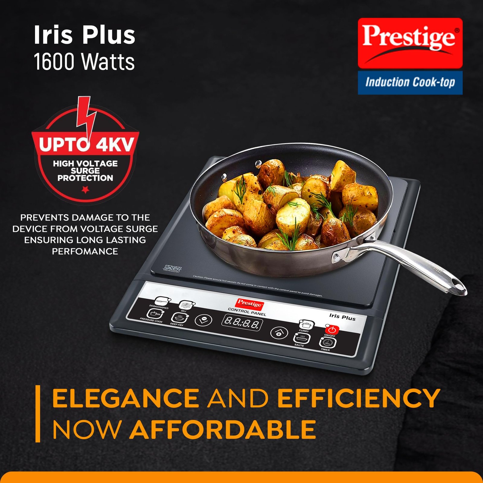 - 𝗣𝗢𝗪𝗘𝗥 𝗦𝗔𝗩𝗘𝗥 & 𝗔𝗨𝗧𝗢𝗠𝗔𝗧𝗜𝗖 𝗩𝗢𝗟𝗧𝗔𝗚𝗘 𝗥𝗘𝗚𝗨𝗟𝗔𝗧𝗢𝗥: Intelligent Power Saver technology optimizes power usage according to cookware size and type, while the AVR manages voltage fluctuations for enhanced durability and consistent efficiency.