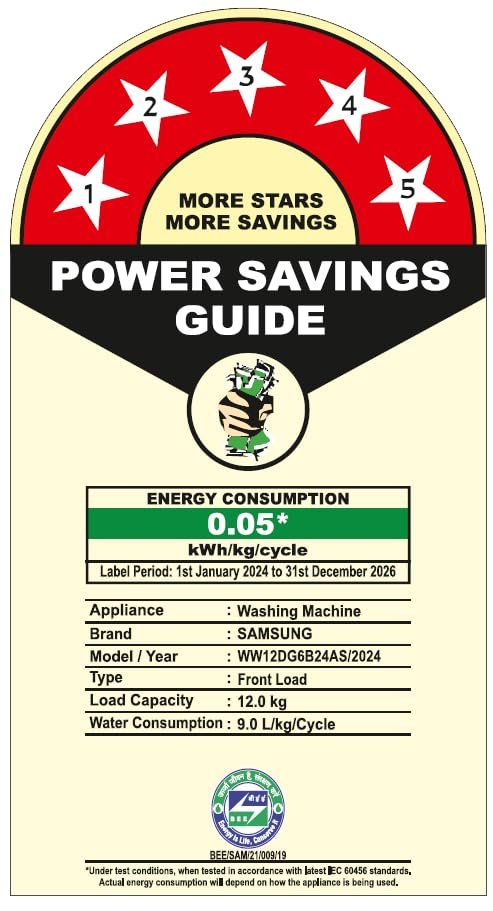 - Energy Star rating : 5 Star- Best in class efficiency | Powered by AI Energy Mode and Digital Inverter Technology for Energy Savings(up to 70%) | Energy Consumption: 0.05 KWh/kg/cycle (For more information refer to BEE Label)