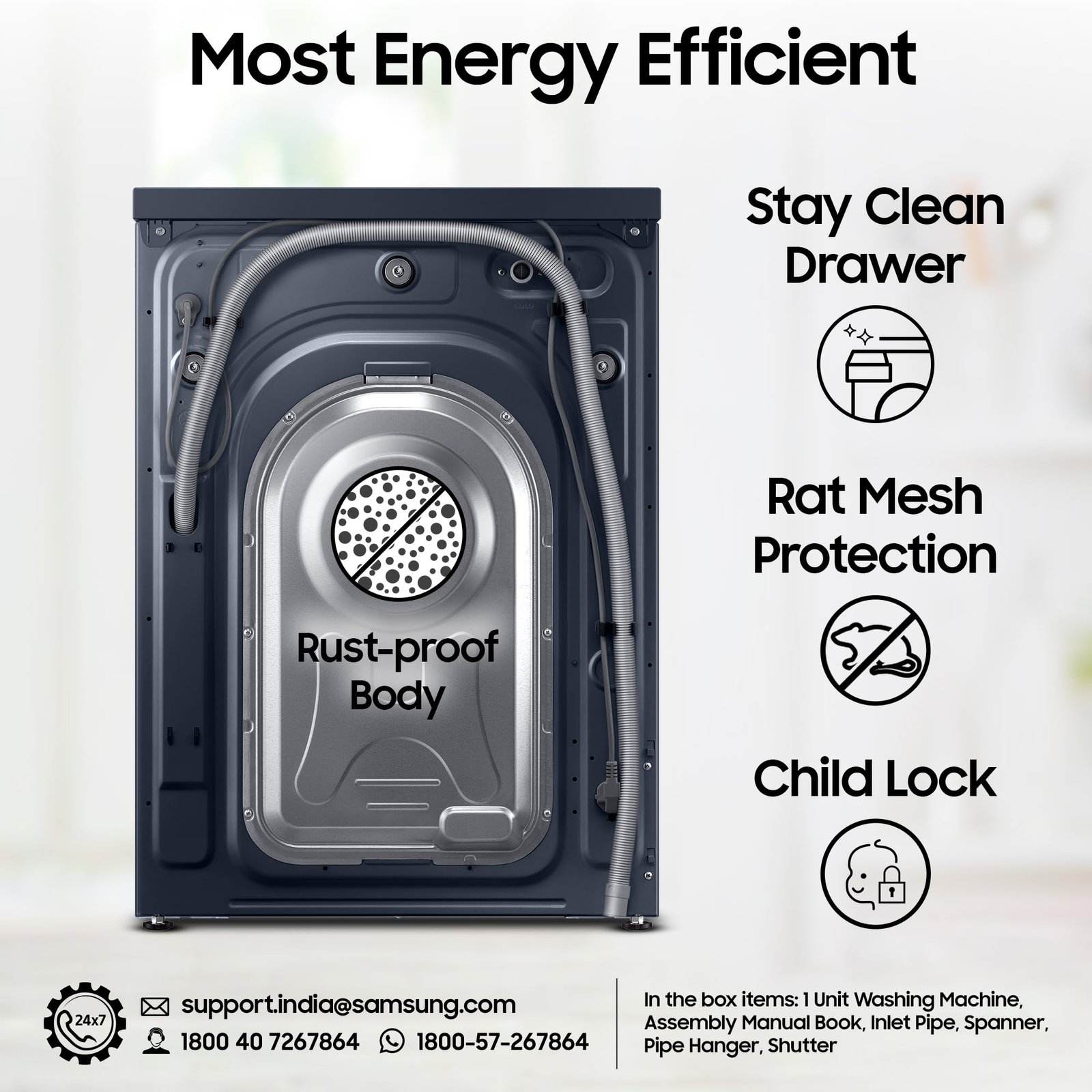 - Capacity 12 kg: Suitable for large families | SpaceMax – More Space inside | Water Pressure: (50-800 KPa) | Water Consumption : Refer to BEE label