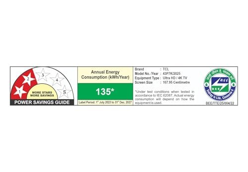 - Smart TV Features: 4K QLED Google TV |2GB RAM | 16GB ROM | 64-bit Quad Core Processor| WIFI 5 | Game Master | Google Assistant |Prime Video, Netflix, Hotstar, Zee5 and more| Web Browser | Screen Mirroring | Works with Alexa | Multiple Eye Care | Eneygy Rating: 2 Star | Annual Energy Consumption: 135 kWh/ Year