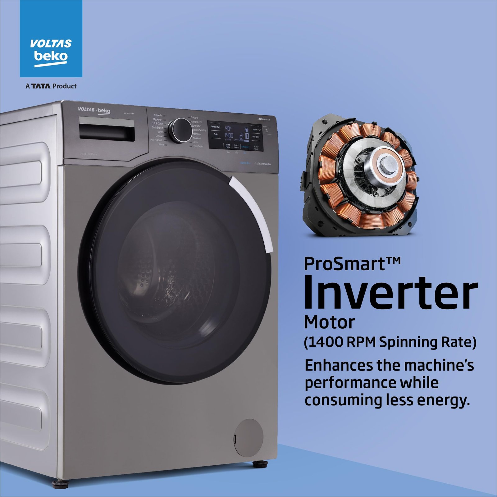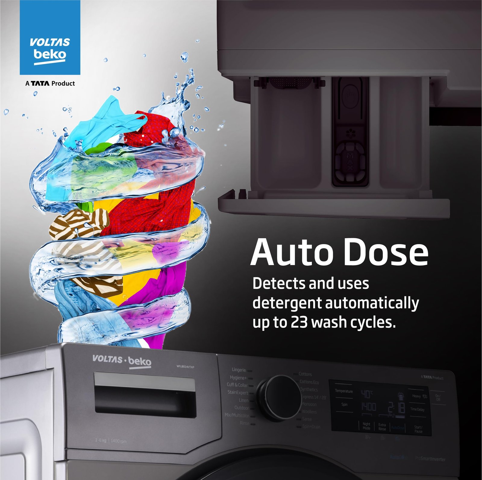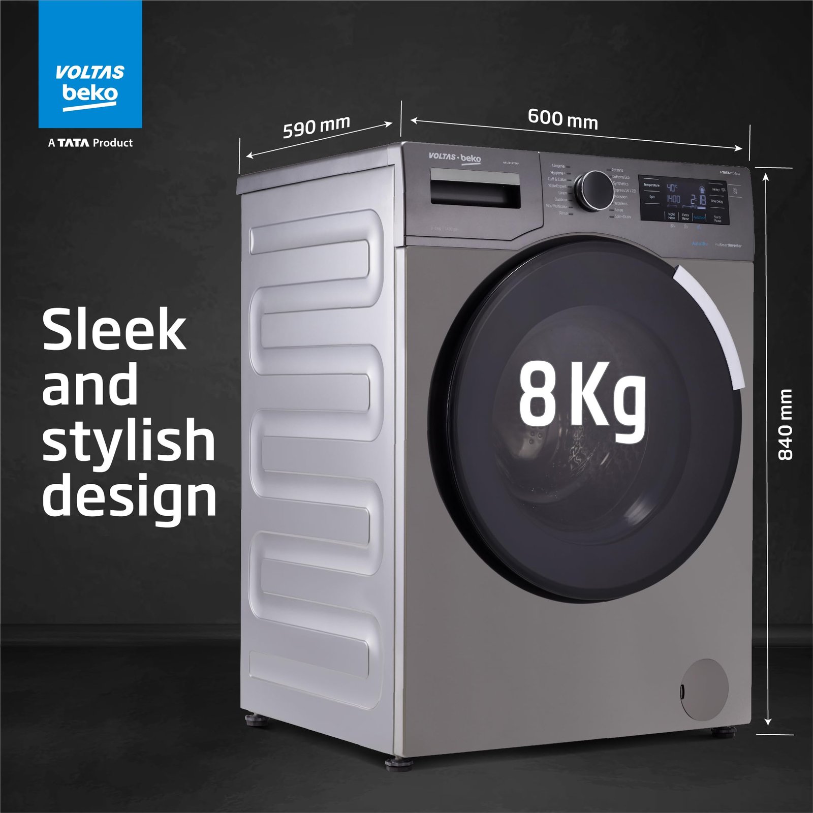 Details: 8 kg Fully Automatic Front Loading Washing Machine Manhattan Gray. Volta is a part of TATA group. The company understand the needs of modern consumers.
